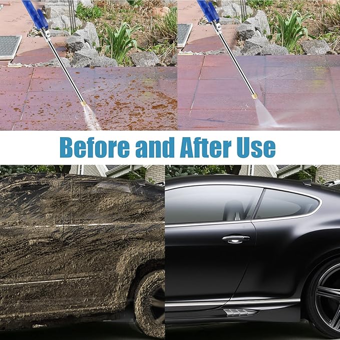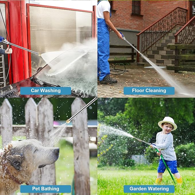 - 【Quick Connect Design】: Comes with 3/4-inch standard and 1/2-inch garden hose connectors, plus quick couplers for fast and easy attachment. This pressure washer wand for garden hose ensures a hassle-free setup without the need for extra adapters.