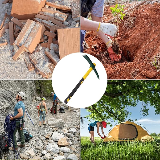 - 【Durable Construction】 Made from premium steel, these 15 Inch Mattock Hoe are designed for long-lasting use. The pointed tip is ideal for breaking through hard surfaces, while the Fiberglass handle provides a comfortable grip and protection against wear and tear.
