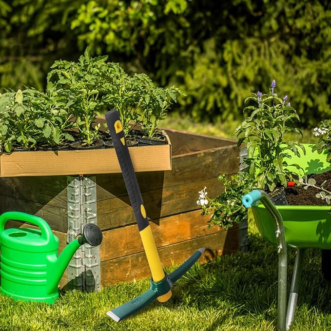 - 【Versatile Uses】 Weeding Mattock Hoe ideal for a variety of applications, including construction, gardening, and emergency rescue. The pointed tip is perfect for breaking up compacted soil, while the flat side can be used for digging and prying.