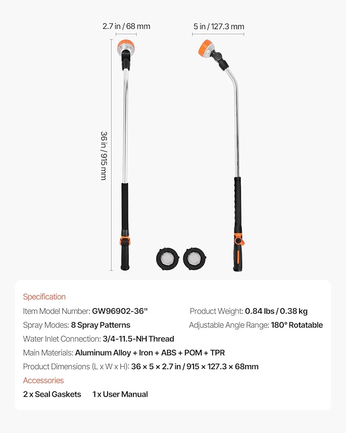 - Excellent Performance: The 180° swivel head on this 36-inch extra long hose nozzle sprayer wand gives you full control over the water direction, allowing you to reach difficult angles and areas for a more flexible and efficient watering experience.