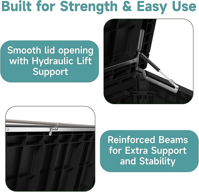 - SECURE & USER-FRIENDLY DESIGN: Equipped with a hydraulic rod, the lid opens and closes smoothly, reducing the risk of accidental pinching. A built-in locking mechanism provides added security, making it perfect for safeguarding outdoor valuables.