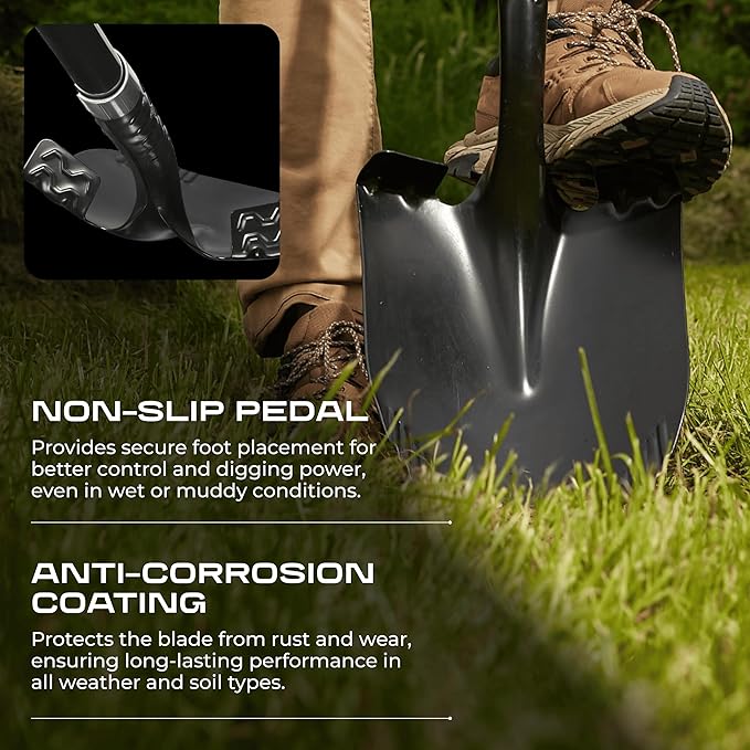 - Ultra-Lightweight Design; Weighing just 4 lbs (1.8 kg), these lightweight shovels for digging significantly reduce strain during prolonged use, enhancing efficiency and comfort for effortless gardening and landscaping.