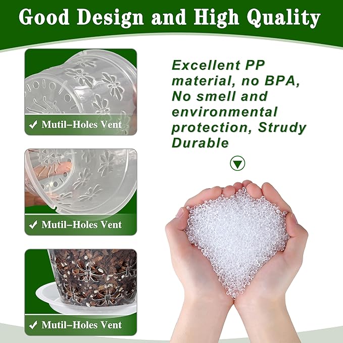 - [ Good Quality & Modern Design]Clear Plastic Orchid pots are made from high-quality Polypropylene(PP)plastic materials, making them highly durable and crack-resistant.Clear Orchid Pot allows you to monitor the plant's growth, ensuring optimal care.