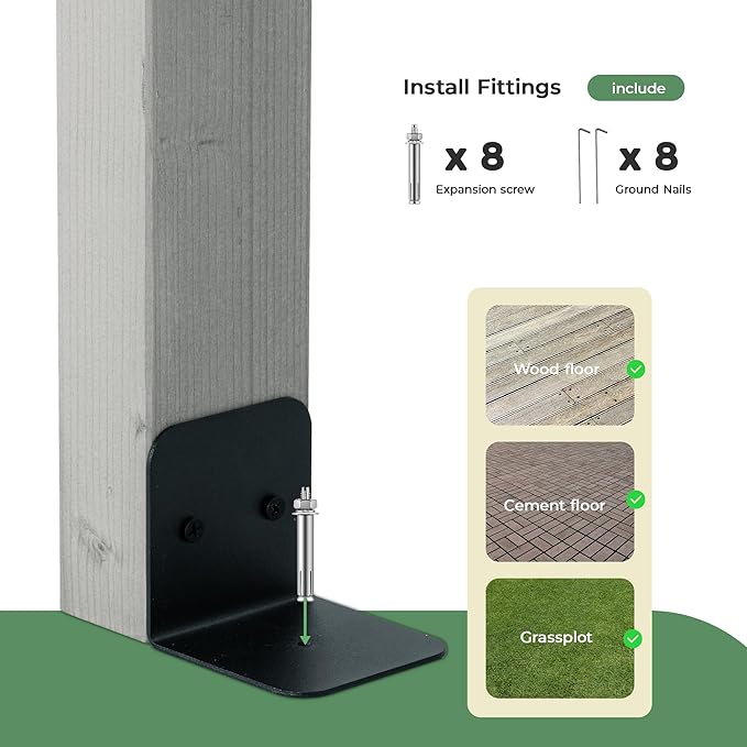 - Double Structure Beams Design: The double-structured beams not only enhance visual appeal but also improve roof stability. The curved slatted design provides an open view with clean lines and a striking layering effect, delivering a unique aesthetic. Additionally, our pergola is equipped with diagonal braces to prevent tipping, ensuring it can withstand strong winds and vibrations.