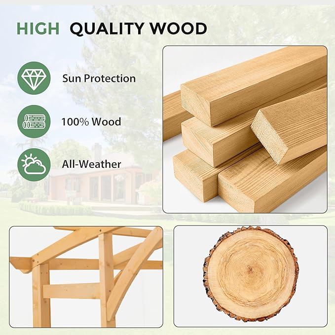 - Solid Wood Frame:This wooden pergola, crafted from solid wood, offers exceptional sturdiness and stability. Its natural wood grain seamlessly complements the patio's aesthetic. The structure is reinforced using advanced engineering techniques and finished with a protective coating, enhancing its durability and resistance to corrosion.