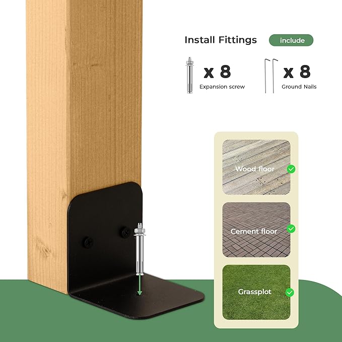 - Double Structure Beams Design: The double-structured beams not only enhance visual appeal but also improve roof stability. The curved slatted design provides an open view with clean lines and a striking layering effect, delivering a unique aesthetic. Additionally, our pergola is equipped with diagonal braces to prevent tipping, ensuring it can withstand strong winds and vibrations.