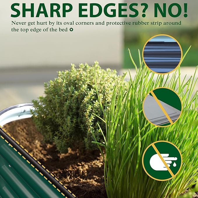 - SAFETY EDGE DESIGN- This oval shape planter box eliminates sharp corners, and the protective rubber strip around the top edge of the bed also protect you from getting hurt. Enjoy your planting time without worrying about scratching your hands!
