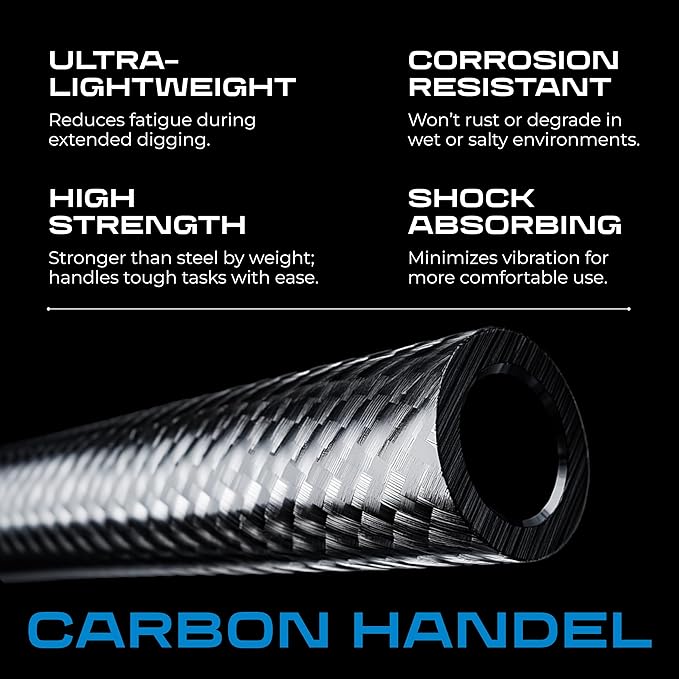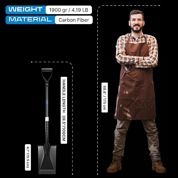 - Lightweight Carbon Fiber Handle- Integrated carbon fiber handle makes this garden shovel exceptionally lightweight and easy to control. Built for comfort and durability, it reduces fatigue during extended tasks—ideal for all your shovels for gardening digging projects.