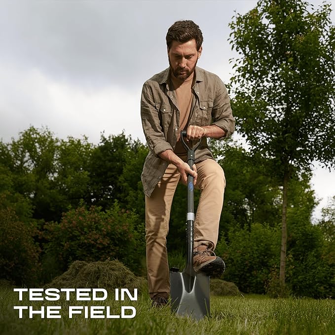 - Secure Non-Slip D-Grip - Sturdy D-shaped handle offers a non-slip grip, providing full control in wet or muddy conditions. Whether used as a garden spade, flat edge shovel, or square shovel, it's a top choice in garden shovels for planting.