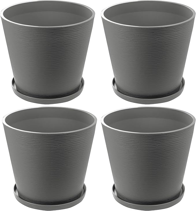 Kozyard 4Packs Round Planter Indoor Outdoor Plant Pots with Tray Collecting Water for Porch, Patio, Backyard Planters Modern Décor for Tall Plants, Flowers