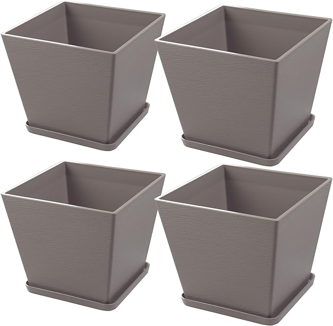 Kozyard 4Packs Taper Planter Indoor Outdoor Plant Pots with Tray Collecting Water for Porch, Patio, Backyard Planters Modern Décor for Tall Plants Flowers GrayishBrown