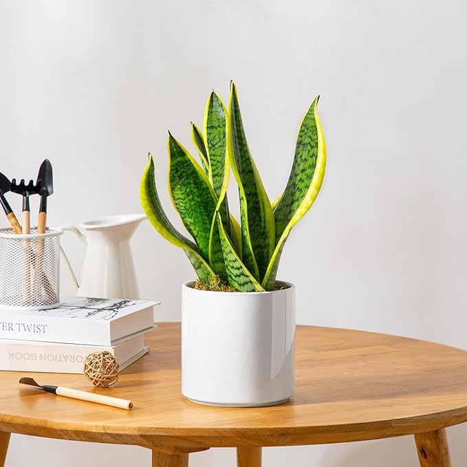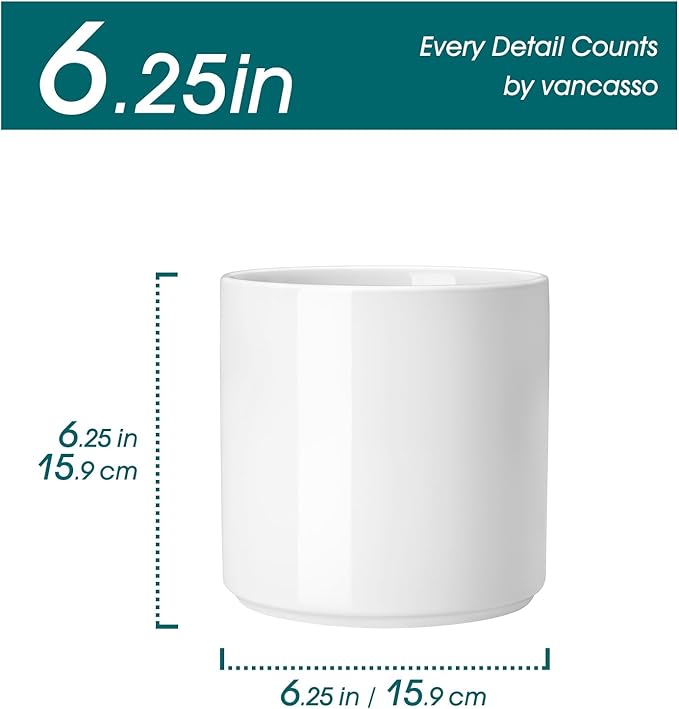 vancasso Ceramic Plant Pots, 6 Inch Planter Pot with Drainage Hole, Flower Pots for Indoor Outdoor Plants, White
