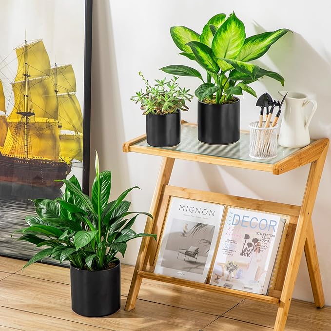 - 【Ceramic Plant Pots】 This set includes three beautifully crafted ceramic flower pots in 4, 5, and 6-inch sizes, perfect for growing a variety of plants and flowers.