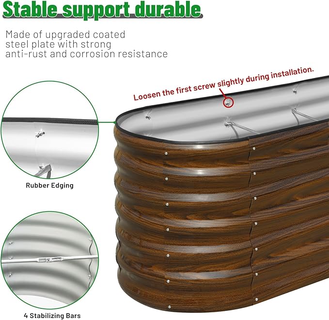 SnugNiture Galvanized Steel Raised Garden Bed, 4x2x2 ft, Outdoor Oval Deep Root Planter Box for Growing Vegetables, Flowers and Fruits