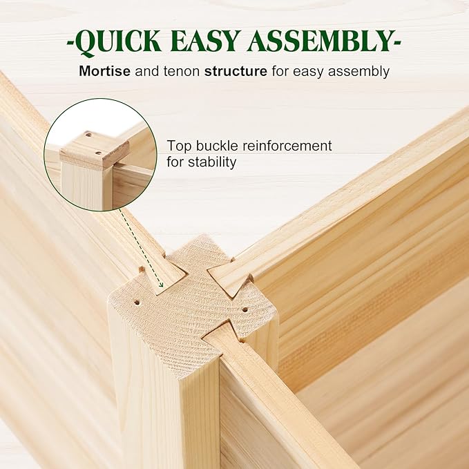- Mortise and Tenon Structure: This garden bed is designed with a central divider to keep plants organized. It ensures quick, tool-free assembly and can be set up in just 15 minutes.