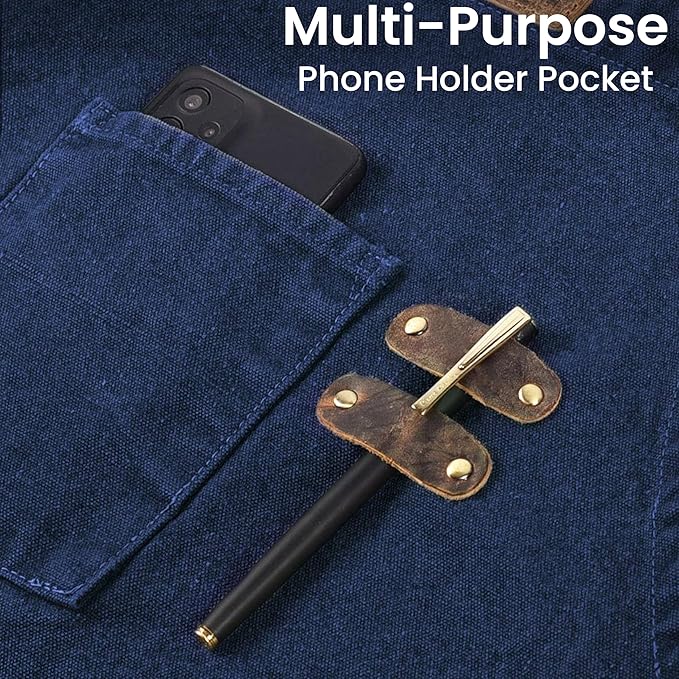 - Smart Pocket Layout - Multiple compartments including a phone holder, tool loops, and a large front pouch keep tools, pens, scissors, and notebooks organized. A practical woodworking apron, carpenter apron for men, or tool apron.