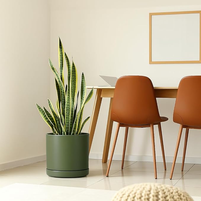 - Simple, elegant, and modern cylindrical straight round planter pot with saucer and drainage hole.