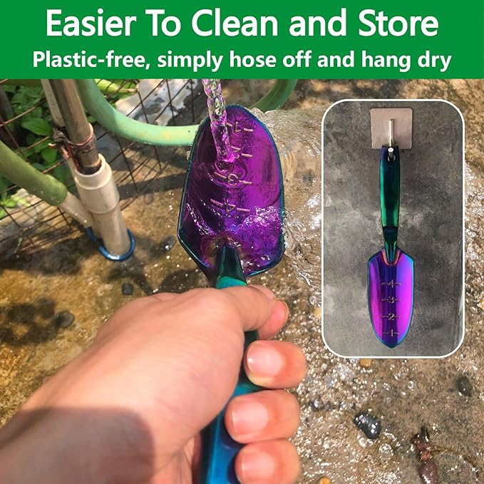 - EASY TO CLEAN - Our hand shovels have a smooth surface, colorful plating, rust-resistant and durable. The small garden trowel is also easy to clean after use, ensuring it looks smooth and stays rust-proof for a longer period of time.