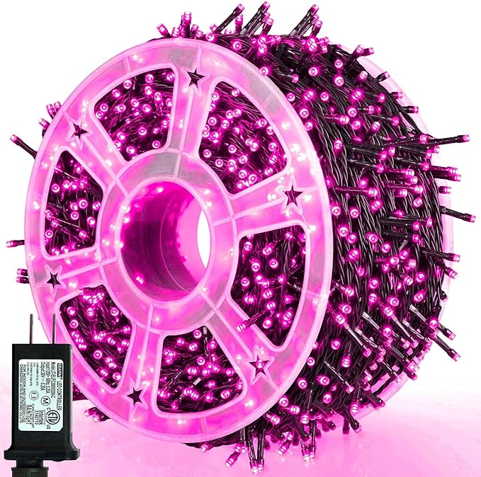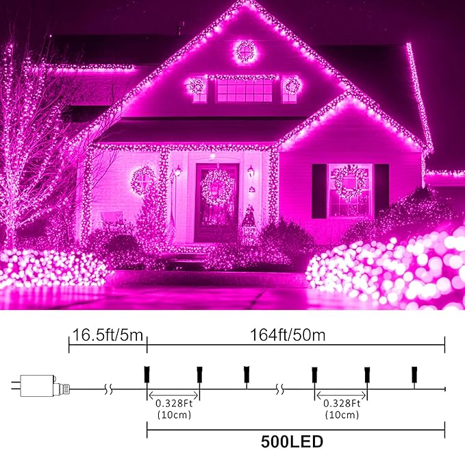 weillsnow Pink Christmas Lights Outdoor, 164 FT 500 LED String Lights Plug in, 8 Modes Waterproof Fairy Lights for Valentines Day, Christmas, Party, Wedding, Bedroom, Garden Decorations