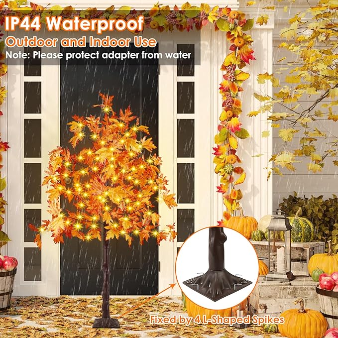 - UL Certified Adapter and IP44 Waterproof: The adapter of fall outdoor decor tree lights is UL certified and meets all safety standards. With IP44 waterproof design, our fall home decor is durable enough to withstand most weather conditions, such as rain, snow, and sleet. Please protect the plug from water or rain when use for outdoor decor