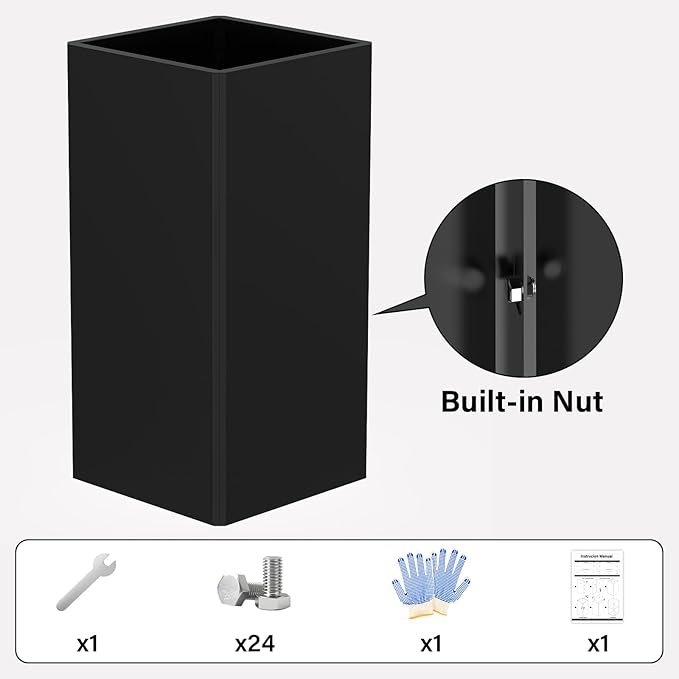 - Modern & Stylish Design: L:14"x W:14"x H:28" tall black planter, with elegant matte color and sophisticated touch, perfect for contemporary and minimalist landscapes. Tall profile maximizes vertical space, also ideal for compact urban gardens or balconies