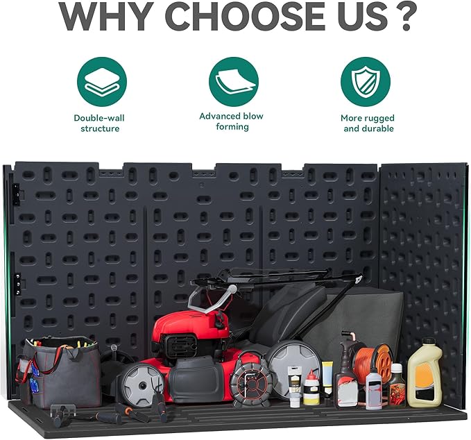 - Easy Setup: Approximately 30 minutes are needed to assemble the lockable storage box; Ensure all components are properly secured or tightened to maintain waterproofing and structural integrity.NOTE: This deck box features a stylish two-tone color design. The Grayish-Black back and right panels may appear Bluish-Gray under sunlight, while the other panels are Black