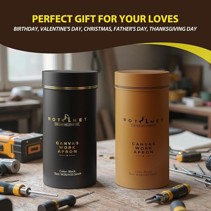 • Premium Gift Package: Machine washable. Made from high-quality canvas, this tough apron resists water, stains and snags. Comes with a reusable box and user instructions, making it an ideal present for men, dads, family, or friends. Perfect gift for woodworkers, DIYers, carpenters, crafters, mechanics