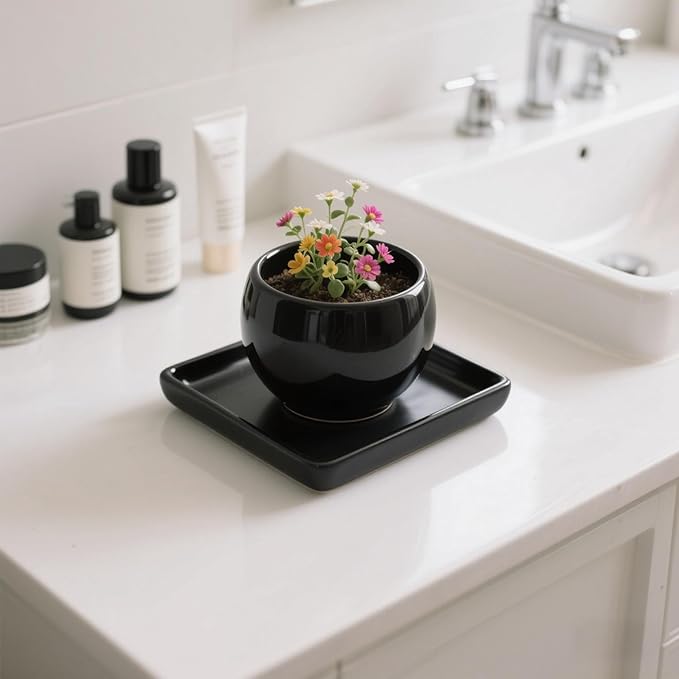 - 4.[ Perfect match for your flowerpot and interior decoration ] Your plant deserves a more attractive plant saucer. This square ceramic Flower pot drip trays is compatible not only with square flower pots but also with round ones. With this Potted plant trays for indoor and outdoor , your flower pots and plants will look more charming than if placed in a plastic plant saucer.