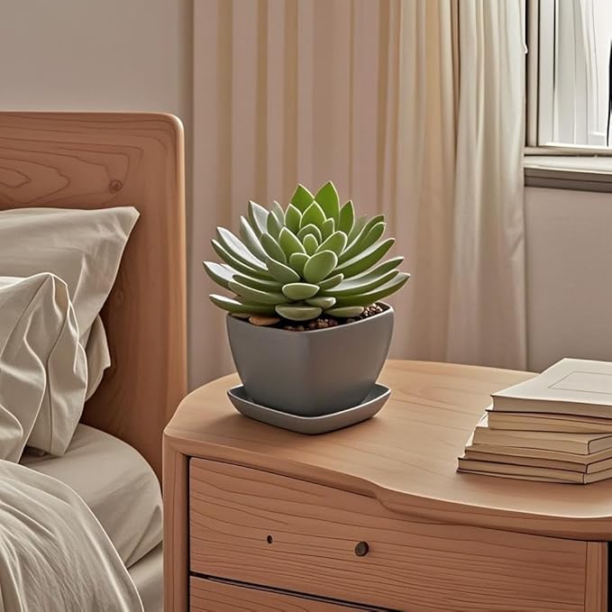 - 4.[ Perfect match for your flowerpot and interior decoration ] Your plant deserves a more attractive plant saucer. This square ceramic Flower pot drip trays is compatible not only with square flower pots but also with round ones. With this Potted plant trays for indoor and outdoor , your flower pots and plants will look more charming than if placed in a plastic plant saucer.