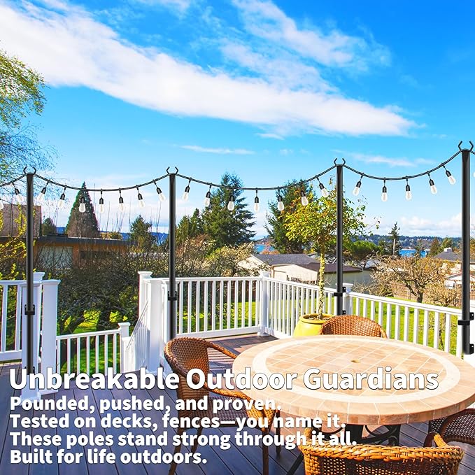 - Light Up Your Vibe. This pole was made for string lights, fairy lights, and banners. It’s your go-to for creating that warm, welcoming glow. The smooth top hook keeps everything secure—no frayed wires or sagging strings. Whether you’re throwing a party or chilling under the stars, it’ll turn your outdoor space into the ultimate hangout spot.