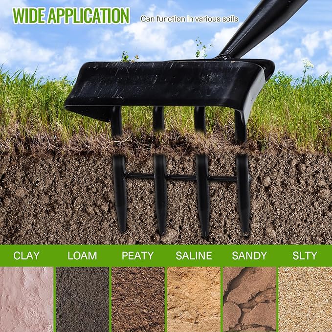 - 【Durable and Efficient】The head and handle of the weeding rake are built to last, a sharp and tough head can weed and loosen soil with ease in various soils.