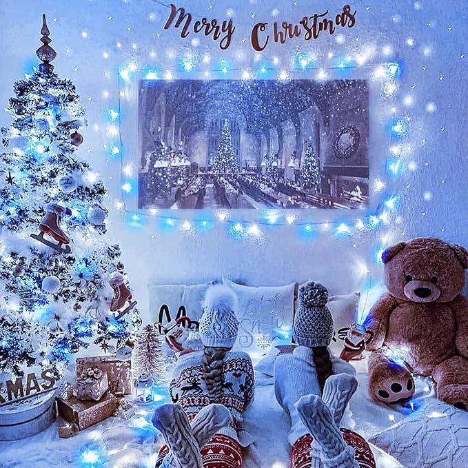 165FT 500 LED Christmas Lights, Plug in Christmas String Lights with Waterproof, 8 Modes Twinkle Fairy Lights for Xmas Garden Tree Holiday Decorations, Blue White
