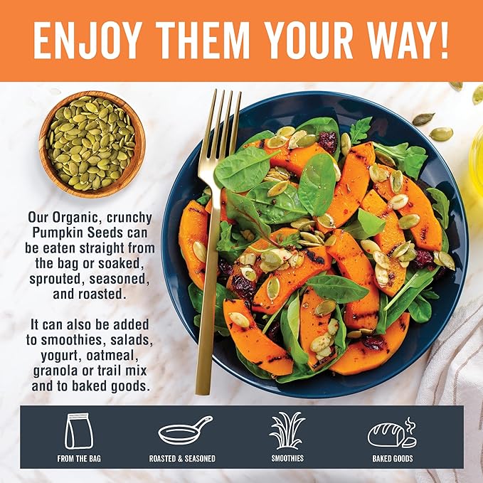 - USDA ORGANIC & NON-GMO — Our Pumpkin Seeds are USDA Organic, Non-GMO Project Verified, and Certified Gluten-Free, Vegan, Kosher, Paleo, and Keto, ensuring you’re getting the highest quality snack for a variety of dietary lifestyles