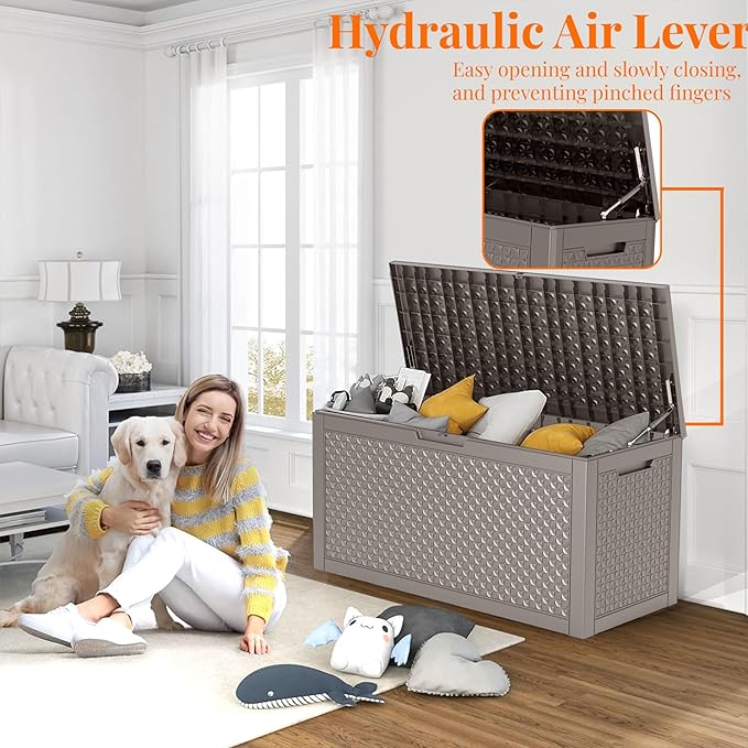 - ADAPTABLE TO VARIOUS SCENES: Whether used as an indoor laundry storage chest or an outdoor deck box container for items like outdoor cushions, garden tools and pool accessories, this patio storage box provides abundant space.