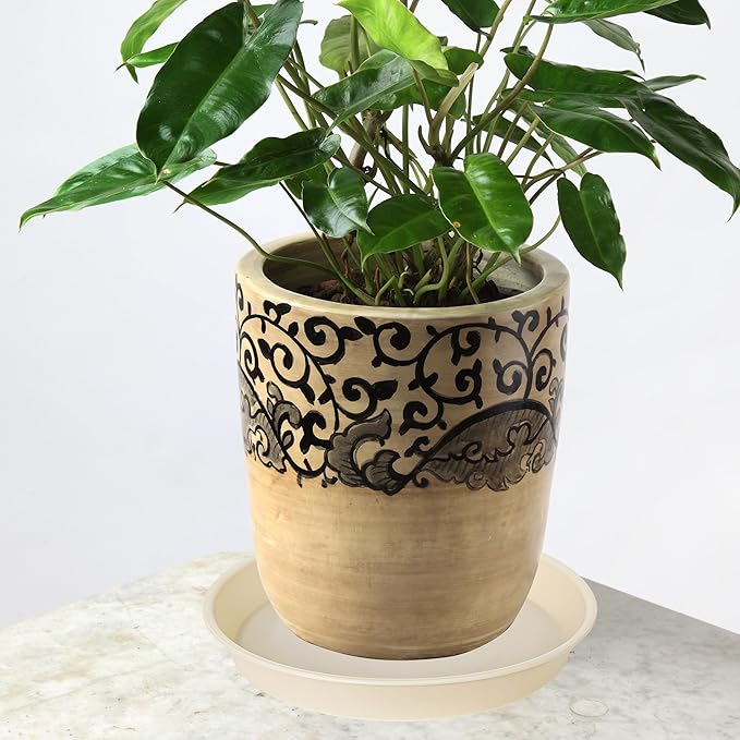 - THICKENED & DURABLE - The small plant saucer are made from duty PP plastic.The plastic is sturdy, strong, durable will last for several years, Plastic plant saucer 14 inch are designed with matte finishing exterior in soft, round shapes, bringing out a modern minimalistic styled, plant saucers for indoors.
