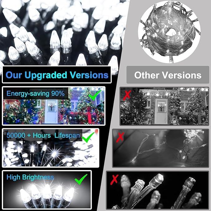 - Durable and reliable, our waterproof Christmas string lights are crafted from high-quality materials and feature advanced LED for enhanced beauty and brightness. Perfect for both indoor and outdoor decorations, they withstand harsh weather conditions like rain or snow. Enjoy a long lifespan and enduring brilliance, making these lights a mainstay of your holiday decor for years to come
