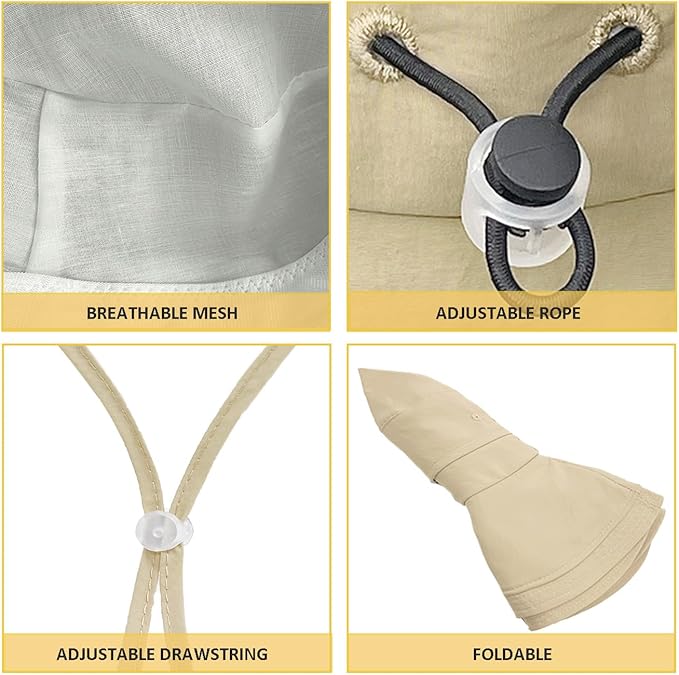 - Premium Material:Crafted from quick-dry fabric, this sun hat keeps you cool and comfortable while remaining lightweight for easy portability. The foldable design allows for compact storage, yet it effortlessly springs back to its original shape when unfolded.