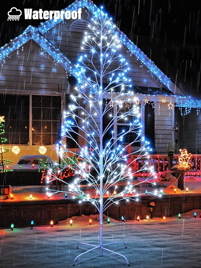 - Upgrade Material : Made of the new metal and plastic material, our Christmas outdoor tree lights is anti-fading, not deformed, and anti-corrosion. This outdoor christmas lighting can still keep stylish looking after years of use, no worries about the aging problem. [Pay attention: This Christmas Cone Tree String Lights is power products, please keep it away from the open fire. And the adapter should avoid water.]
