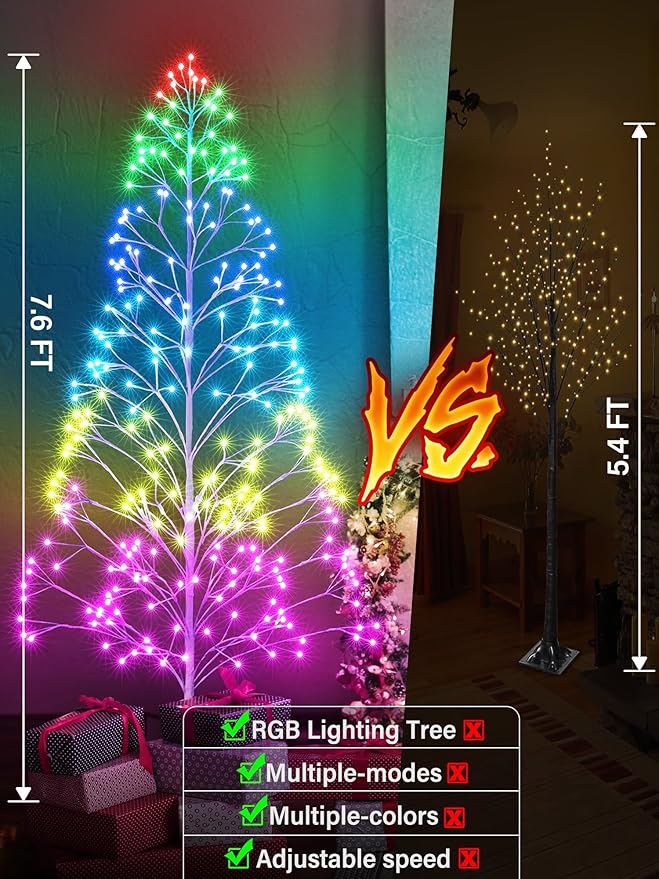 - Dazzling Light Design : 336 ultra-bright LEDs evenly distributed across the tree, towering at 7.5ft. Enhanced brightness & color saturation ensures day-and-night visibility,perfect for creating festive displays for Christmas, July 4th, St. Patrick's Day, and Valentine's Day.