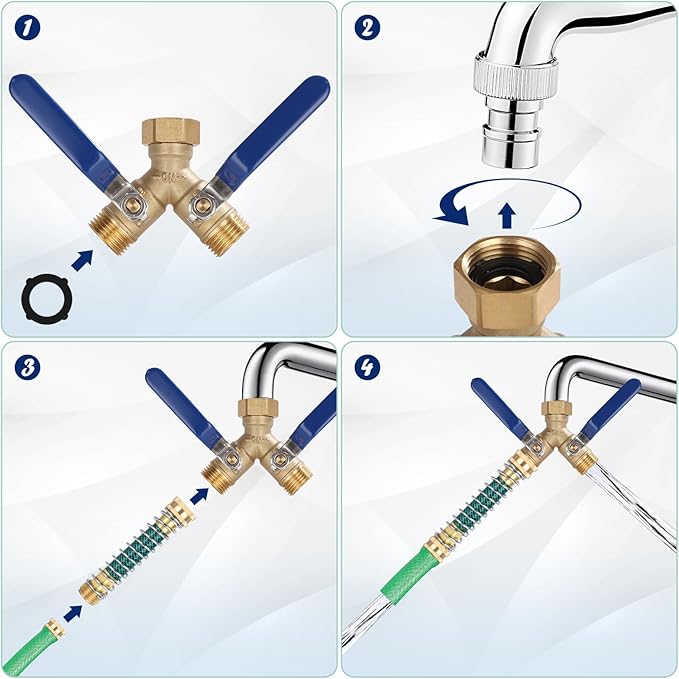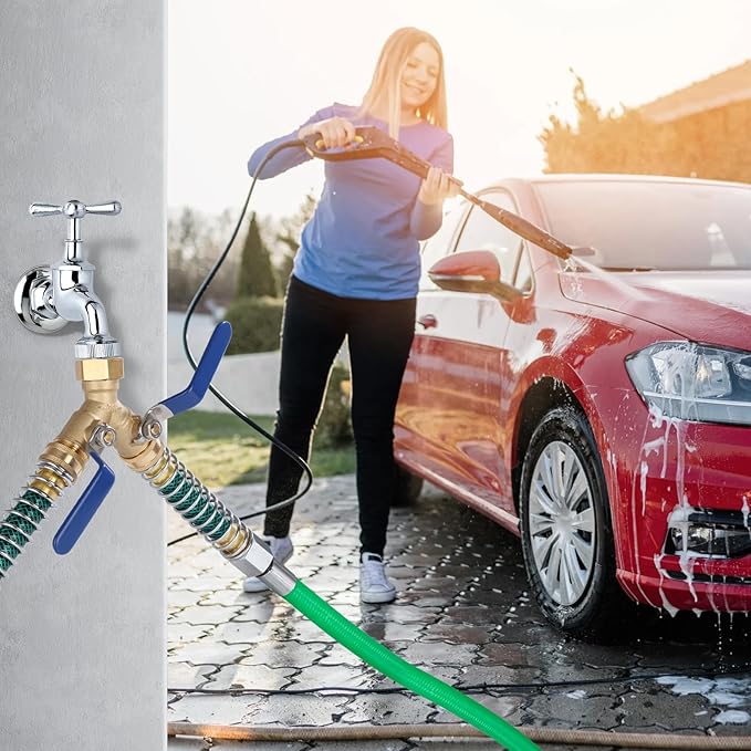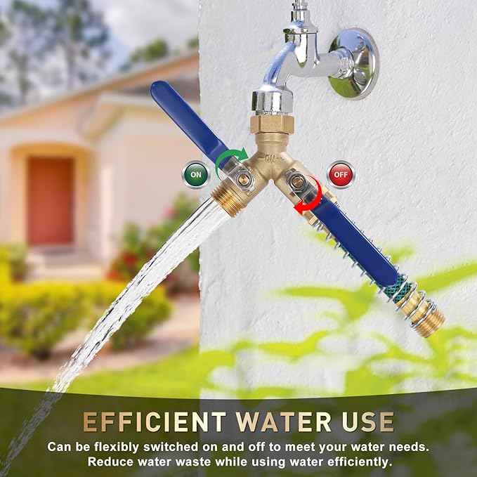 - DURABLE BRASS CONSTRUCTION: Made from high-quality brass, this garden hose splitter is designed to resist corrosion and ensure long-lasting performance. And the garden hose protector prevents the garden hose from kinking and leaking, Suitable for both indoor and outdoor use