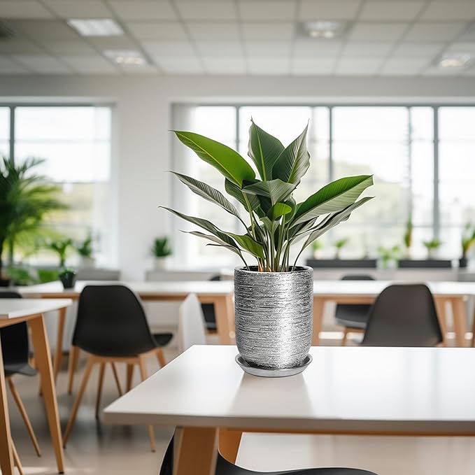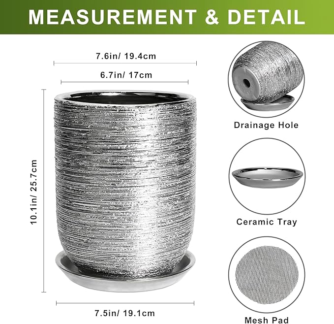 - Size of Ceramic Plant Pot: Each silver planter is 7.6” in outer diameter and 10.1” in height. The optimal size makes plant pot an ideal home for planting cactus, monstera, money tree, ficus lyrata, olive tree, succulent