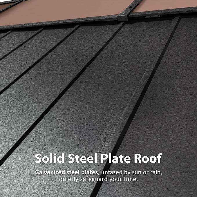 - Gable Roof Design : The roof made of sturdy galvanized steel and PC boards, is not only a top “snow tough guy” capable of effortlessly supporting 2500LBS of snow but also a skillful “sunlight blender,” perfectly mixing the sunlight to create a gentle sun bath during the day.
