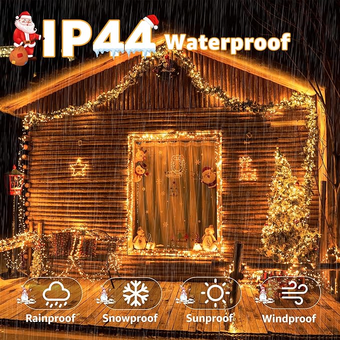 - Rain or Shine, They Shine: Christmas Cluster lights are IP44 waterproof, suitable for indoor and outdoor use, just hang them around windows, stairs, eaves or stair banisters; Let them take center stage in your outdoor display, and watch your house become the brightest stop on the block—no matter the weather