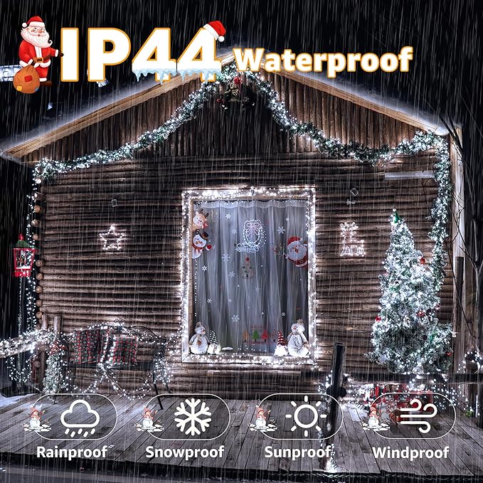 - Rain or Shine, They Shine: Christmas Cluster lights are IP44 waterproof, suitable for indoor and outdoor use, just hang them around windows, stairs, eaves or stair banisters; Let them take center stage in your outdoor display, and watch your house become the brightest stop on the block—no matter the weather