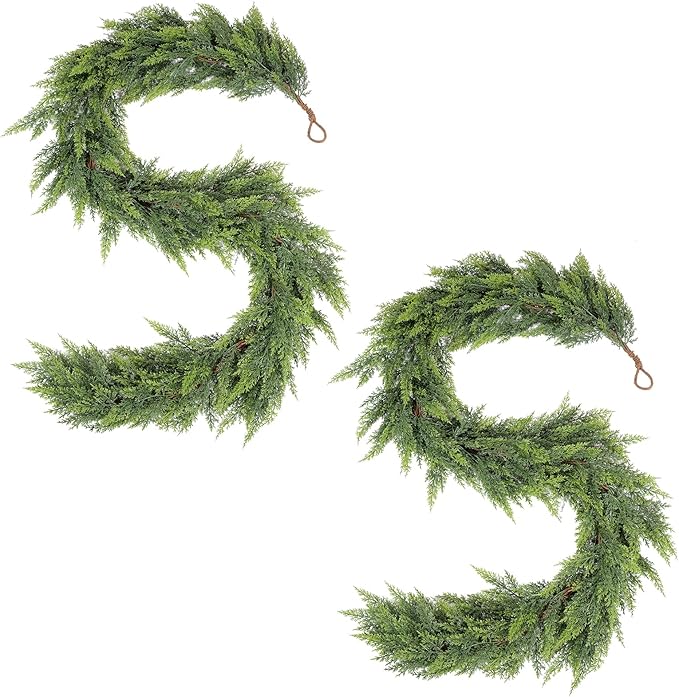 - 【Gradient Green, Fresh and Lifelike】: We’ve carefully designed the garland’s color to mimic real juniper, performing a natural gradient from deep green at the stems to tender green at the branch tips to bring life to your house.