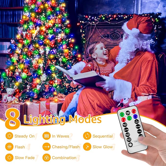 - 8 Modes: Christmas tree lights feature 8 modes—combination, steady on, waves, sequential, slow glow, chasing/flash, slow fade, and twinkle/flash; Plus, 4 brightness levels (25%, 50%, 75%, 100%) are available; These lights add charm to your home, creating lasting memories for you and your family