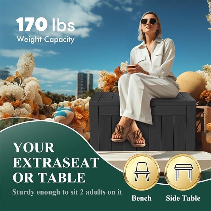 - Deck Box Double Duty : Use outdoors as a stylish deck storage chest or indoors as a sleek entryway organizer. Waterproof design handles sudden downpours, while reinforced corners prevent warping.
