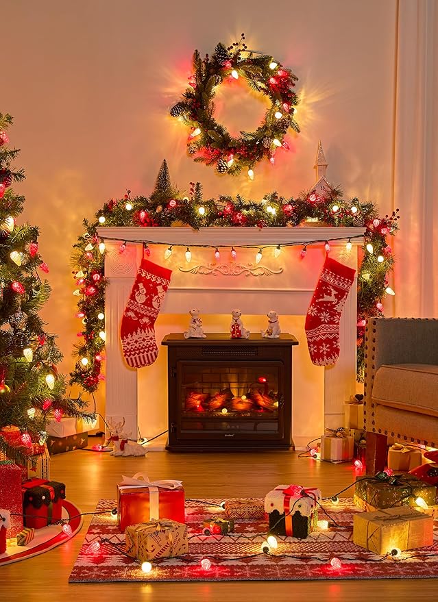 - Special Feature : 8 Lighting Modes, Memory Function, Timer Function: 6H on & 18H Off, Connectable, UL certified, Waterproof, LED C9 Strawberry-Shaped Bulbs, Christmas Tree Decorations 8 Lighting Modes, Memory Function, Timer Function: 6H on & 18H Off, Connectable, UL certified, Waterproof, LED C9 Strawberry-Shaped Bulbs, Christmas Tree Decorations