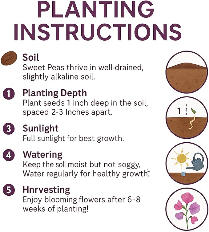 - Perfect for Gardens & Patios: Whether you're enhancing your flower garden or adding color to your patio, these Sweet Pea Seeds are a versatile option for any space that needs a touch of natural beauty