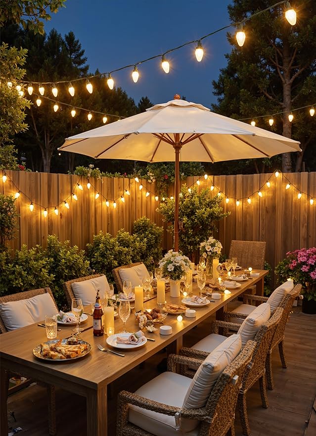 - Connectable & Replaceable Bulbs: Easily link up to 2 sets (228FT total) for larger outdoor displays. Each C9 bulb is removable and replaceable, and if one burns out, the rest stay lit. Includes 2 spare bulbs for easy maintenance through the season